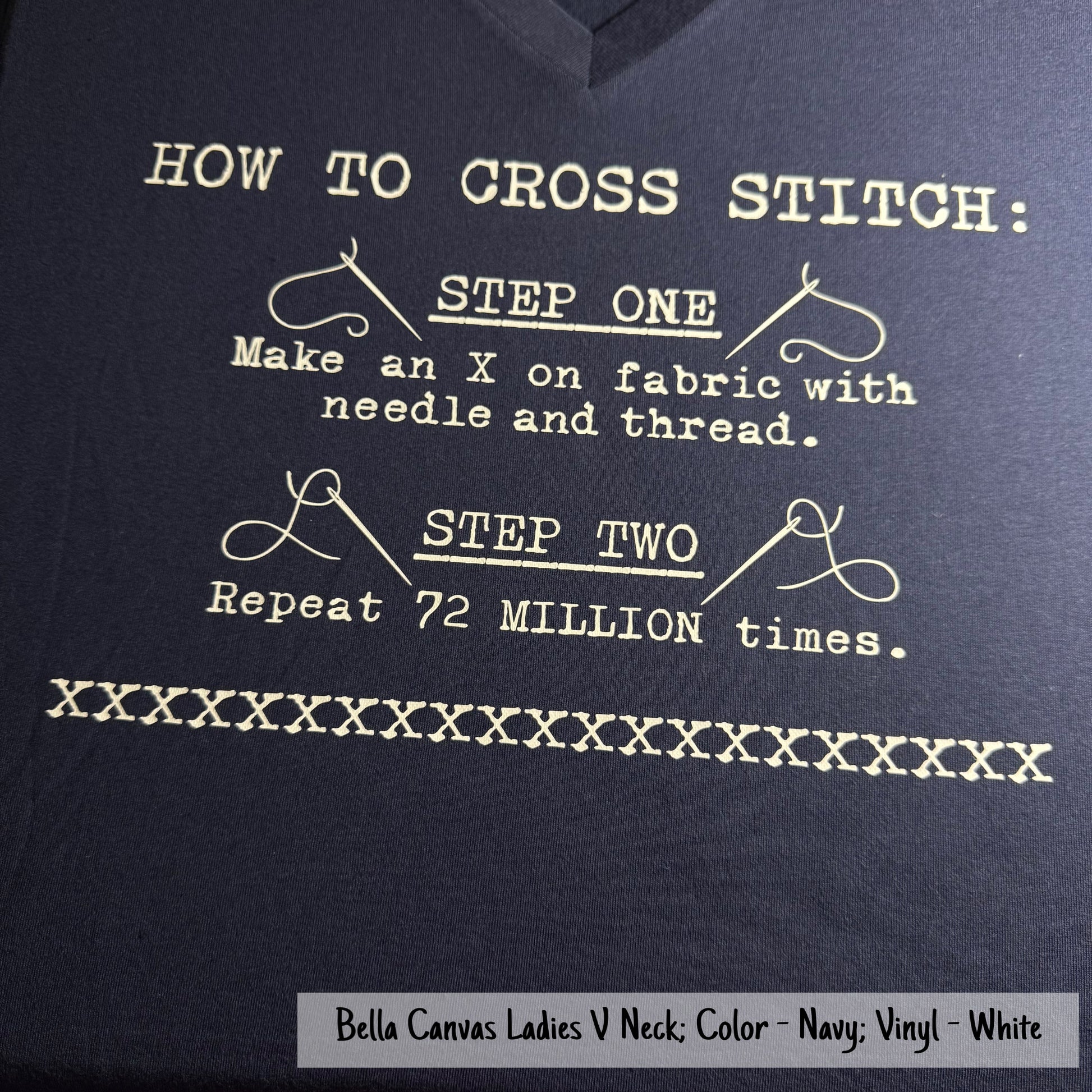 Are you often asked “how do you do that?” when some sees you stitching? I have been asked numerous times and my answer has always been “it’s easy, just make and x over and over and over and over!” This shirt perfectly explains the cross stitch process for everyone wondering!