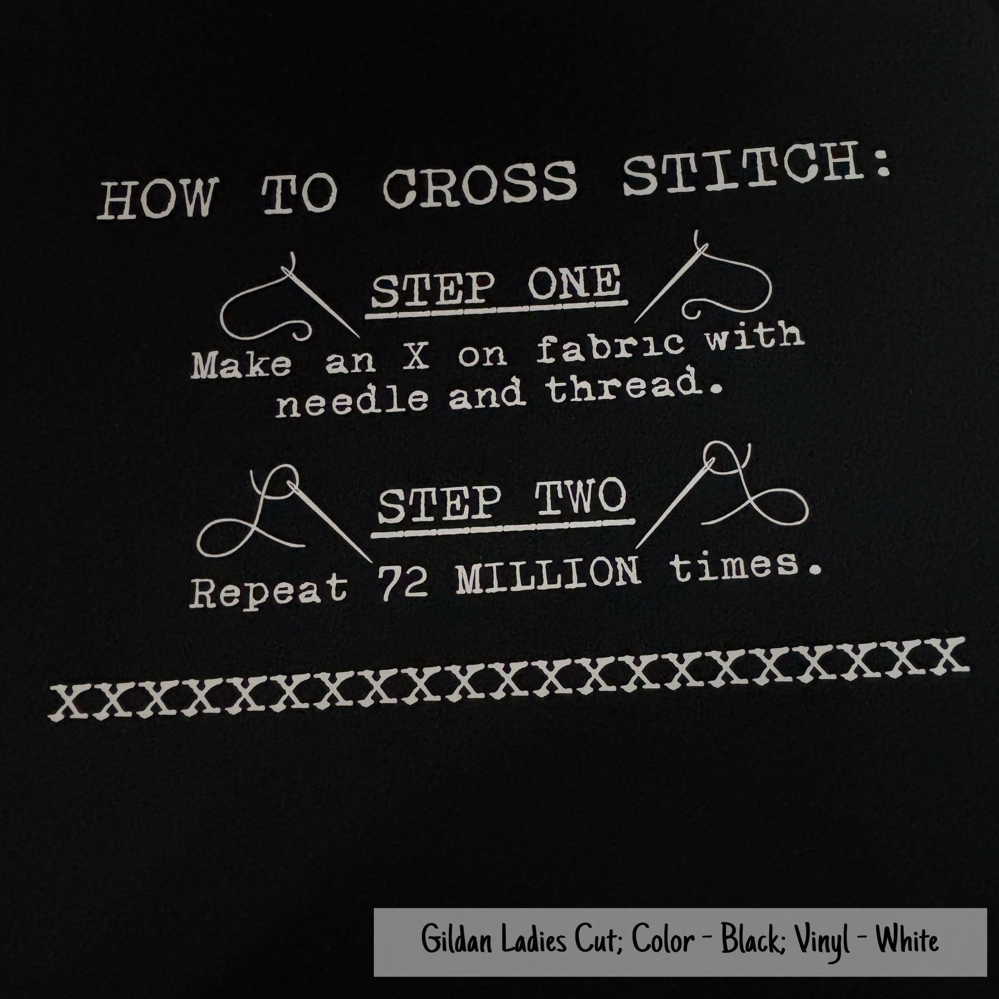 Are you often asked “how do you do that?” when some sees you stitching? I have been asked numerous times and my answer has always been “it’s easy, just make and x over and over and over and over!” This shirt perfectly explains the cross stitch process for everyone wondering!